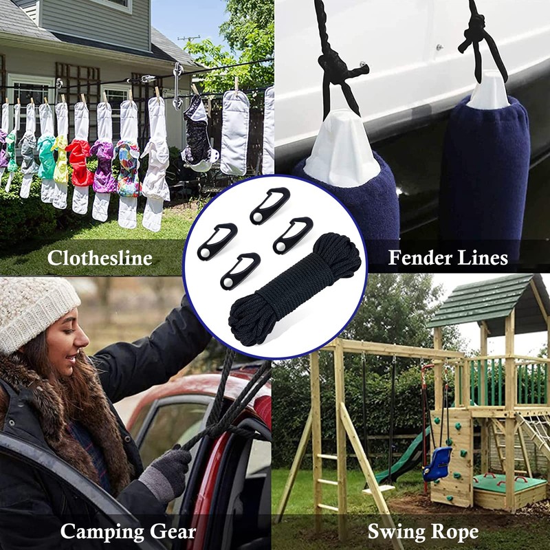 - Wide Application ▶ NQ Nylon rope kit is widely used in homes and outdoors. Whether used as a clothesline, swing rope, hammock rope, handicraft, or for outdoor purposes such as camping, climbing, boat masts, etc., this durable rope is perfect addition to your outdoor gear.