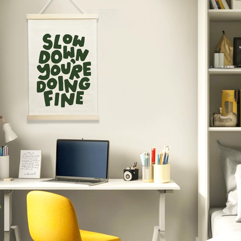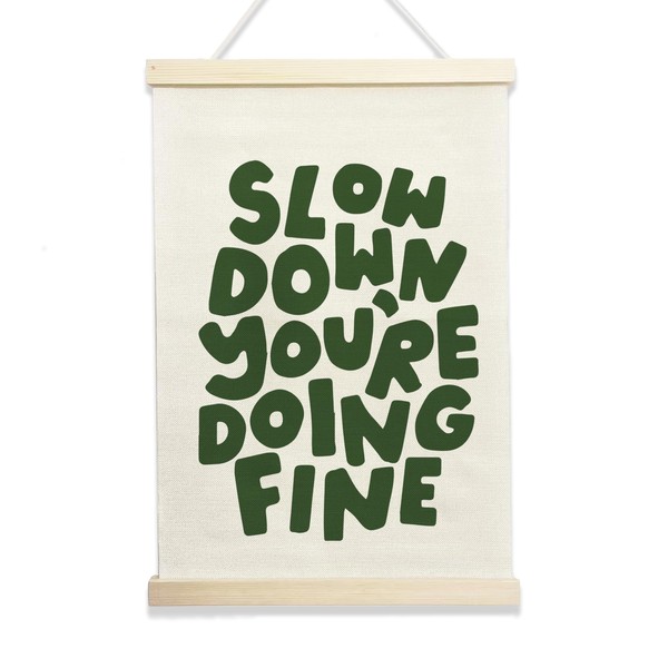 NQDWX Slow Down You're Doing Fine Hanging Flag - Motivational Wall Decor for Office Bedroom Therapy Room, 12x17 Inches Calming Canvas Banner with Wood Frame. (078)
