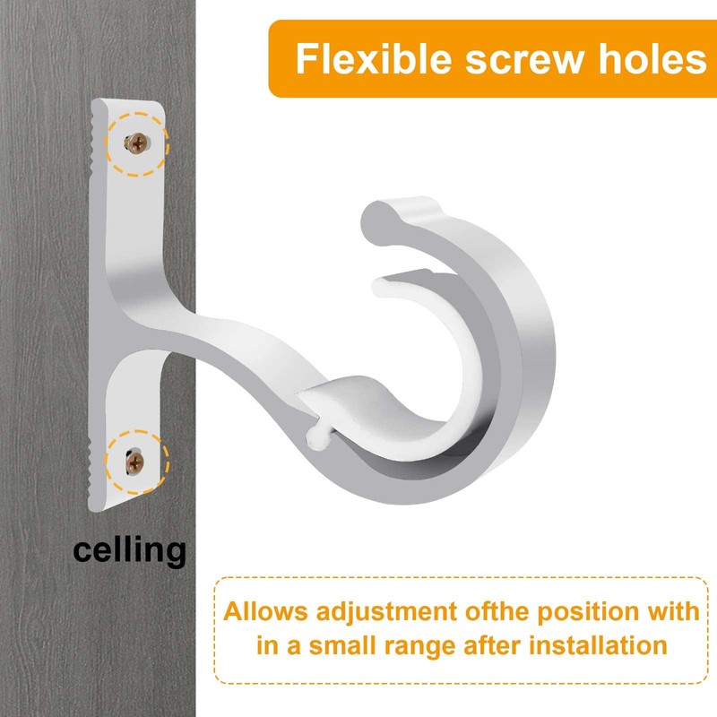- 【Sturdy and Durable】The curtain rod bracket is made of high quality aluminum alloy with anti-rust coating on the surface, which is durable, anti-corrosion and wear-resistant. Can be used for a long time. A set of 2 brackets to attach the curtain rod to the wall.