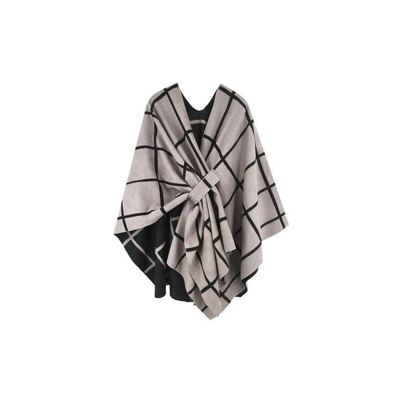 nratto Women's Elegant Shawl Wraps, Soft Open/Cross Front Poncho Cape, Reversible Casual Cardigan Shawls for Travel, Gift (Plaid Khaki)