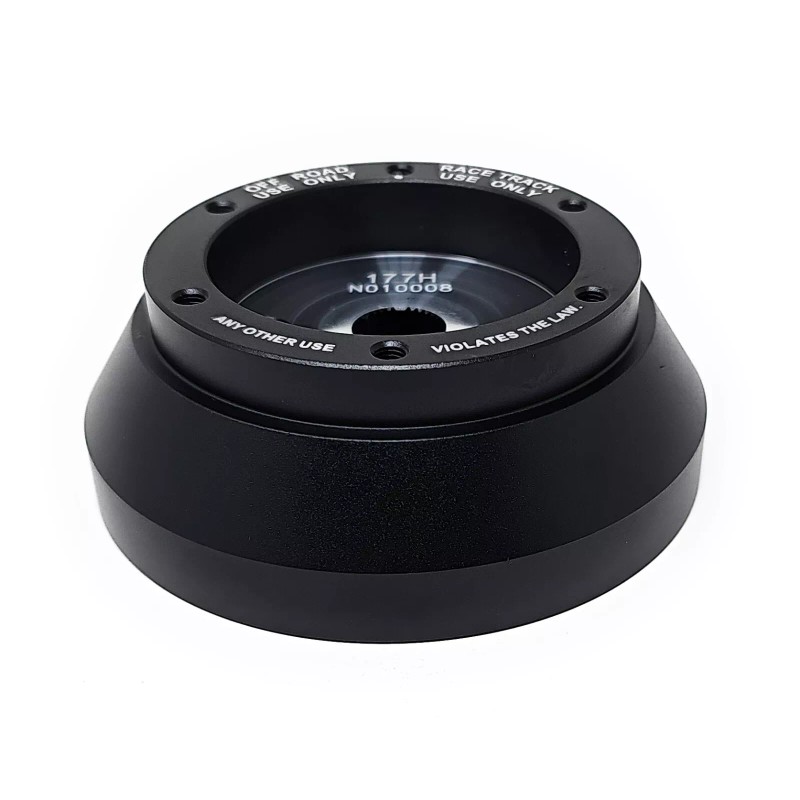 Our iconic Short Hub, and the product that started it all. A steering shaft hub for use with a lockable steering wheel quick-release unit, Patent: US752793B1, featuring the shortest possible mounting surface while still retaining the ability to use your horn and turn signals about 99% of the time. The Anodized 6061 Aluminum construction is miles ahead of our competition, in both style and functional aspects. See for yourself.