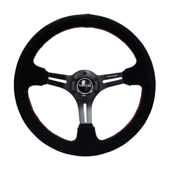 NRG Reinforced Steering Wheel (350mm / 3in. Deep) Blk Suede w/Red Stitching & 5