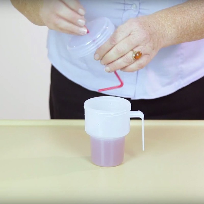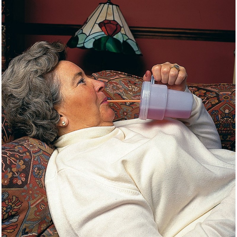 • Enables drinking without fully sitting up, ideal for people who may not be able to tip the head back to drink