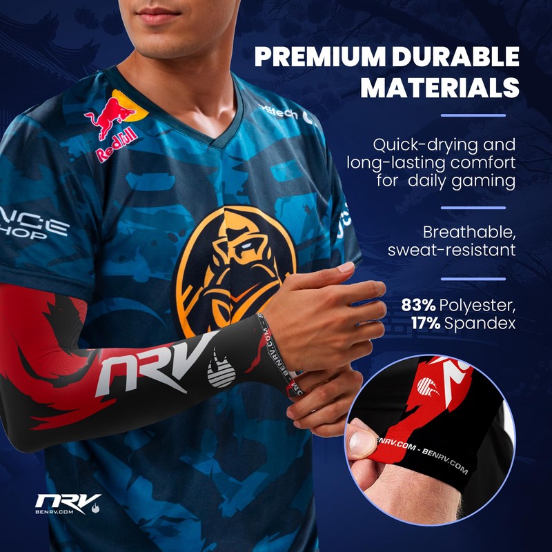 NRV Compression Gaming Esport (Edition) - Optimize your eSports Game with Camouflage Style - Designed by Professionals - Durable, Breathable and Friction Free, black/red, L