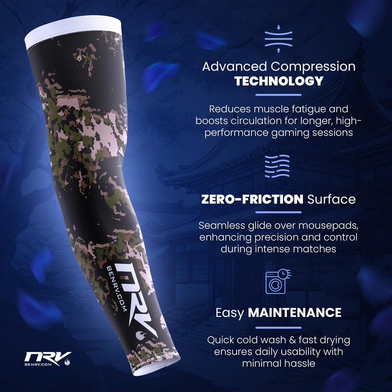 NRV Gaming Compression Sleeve - Army Edition - Optimize Your Game with Comfort and Style - Designed by Professional Players - Durable, Breathable and Friction Free, camouflage earth, XL