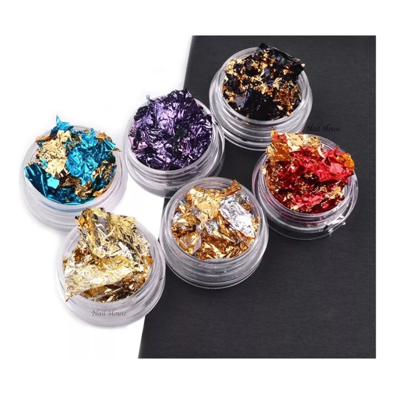 NS Hoja Negra Oro Plata Morada Roja Bronce Y Decoración De Uñas