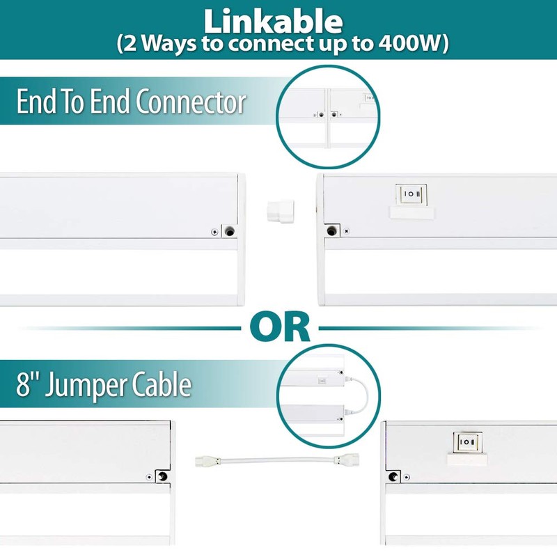 NSL LED Under Cabinet Lighting Dimmable Hardwired or Plugged-in Installation - 3 Color Temperature Slide Switch - Warm White (2700K), Soft White (3000K), Cool White (4000K) - 18 Inch White Finish