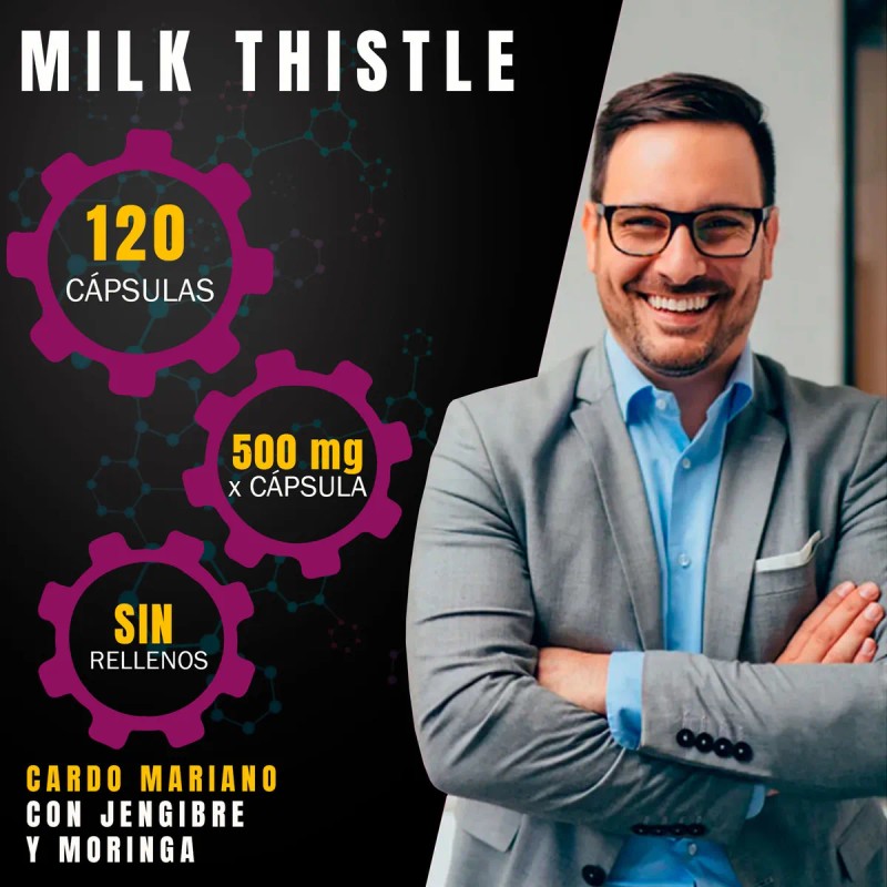 NSN Milk Thistle con Cardo Mariano Moringa Jengibre Alcachofa Achicoria Antioxidante Higado Graso 120 Cápsulas 60 Dias