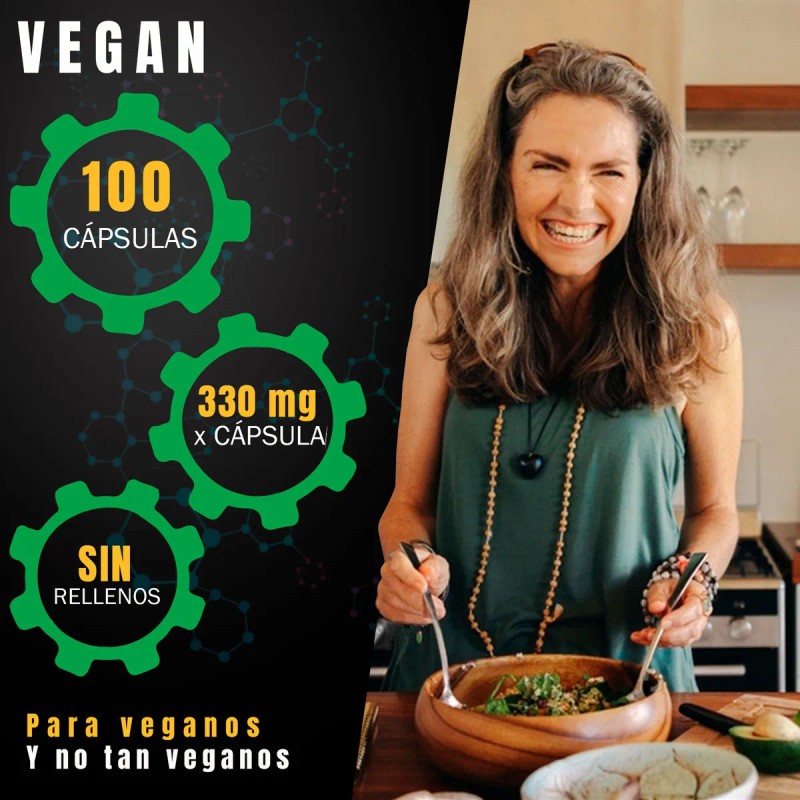 Imagina esto: no es solo un suplemento, ¡es la sede central de tu energía plant-based, encapsulada en una fórmula que grita "¡Sí se puede ser vegano y estar espectacularmente bien!"! Sin sabor y totalmente a base de plantas, este es tu billete dorado para una vitalidad sin límites.