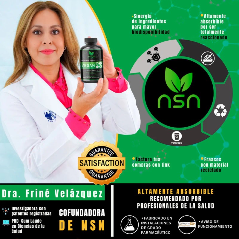 ¡El "power-up" vegano que esperabas! 🌱⚡️ NSN Vegan (Sin Sabor): Omega 3, 6, 9, Hierro, Vitamina K2 y B12, ¡todo en uno! Para energía imparable, mente brillante y huesos fuertes, 100% a base de plantas. ¡Tu kit de superhéroe vegano listo para la acción! (Suplemento Alimenticio. Consulta a tu médico).