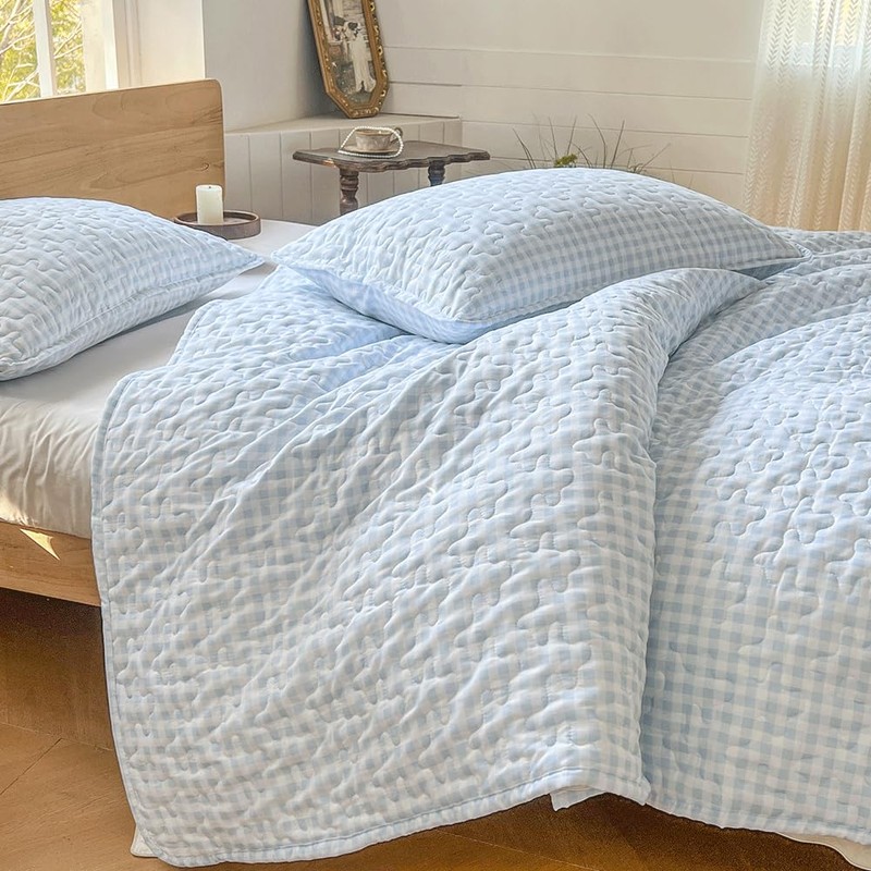 - High-Quality and Durable Fabric: Crafted from premium materials, this quilt set offers a soft touch and long-lasting durability. It is resistant to fading and wear, ensuring that the vibrant gingham pattern stays fresh and beautiful over time.