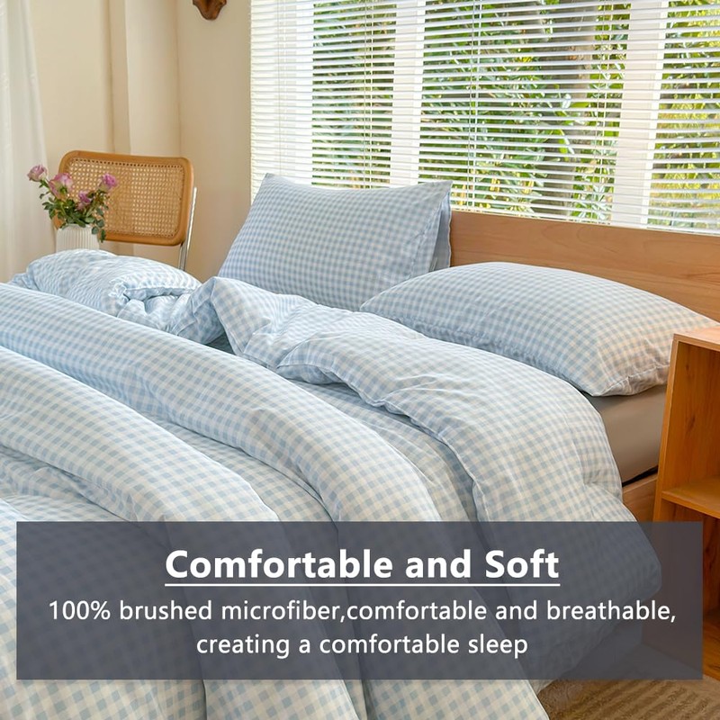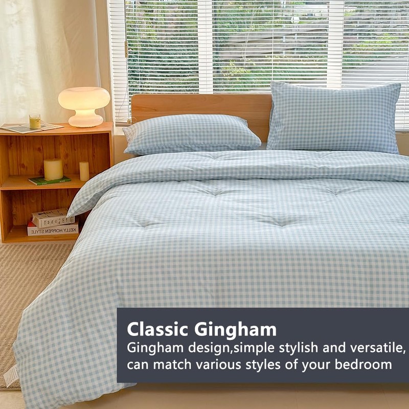 - Premium Quality: Crafted from high-quality materials, our blue gingham bedding comforter set offers superior comfort and durability. The soft and sumptuous fabric ensures a restful night's sleep, night after night.