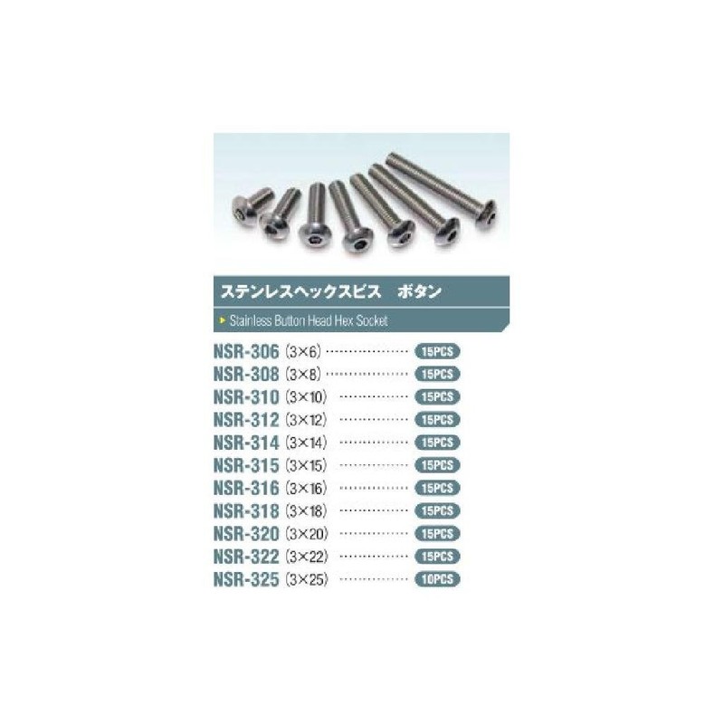 NSR-308 3 x 8 Stainless Steel Hex Button Screws (15 pieces)