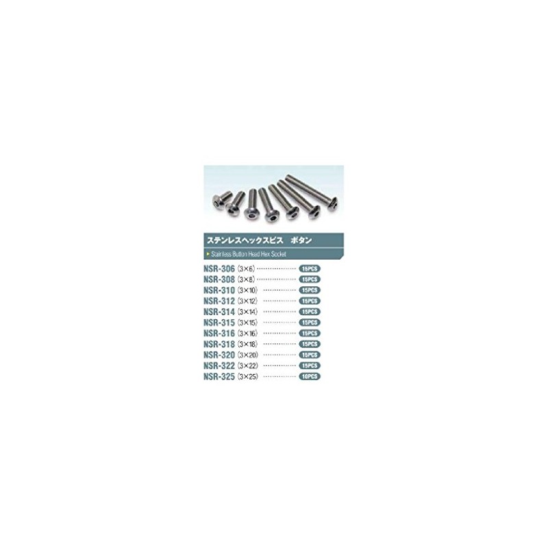 NSR-315 3 x 15 Stainless Steel Hex Button Screws (15 pieces)