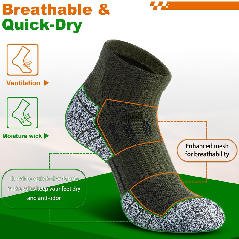 NSRRUN TURTLE Wool Compression Ankle Socks - Cozy Cushioned Hiking Running for Men Women - Thick Warm Durable, Large, Green, 4 Pairs