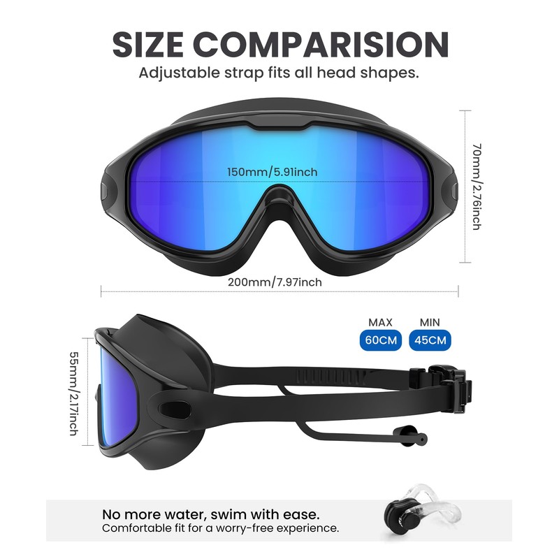 - Breathable and Fog Free Performance: Adult swim goggles innovative ventilation system prevents fogging without compromising seal. Ultra-soft gaskets of adult goggles swimming distribute pressure evenly. Mirrored lenses of goggles adult reduce glare in bright conditions. Ideal for competitive swimmers, snorkelers and water aerobics enthusiasts