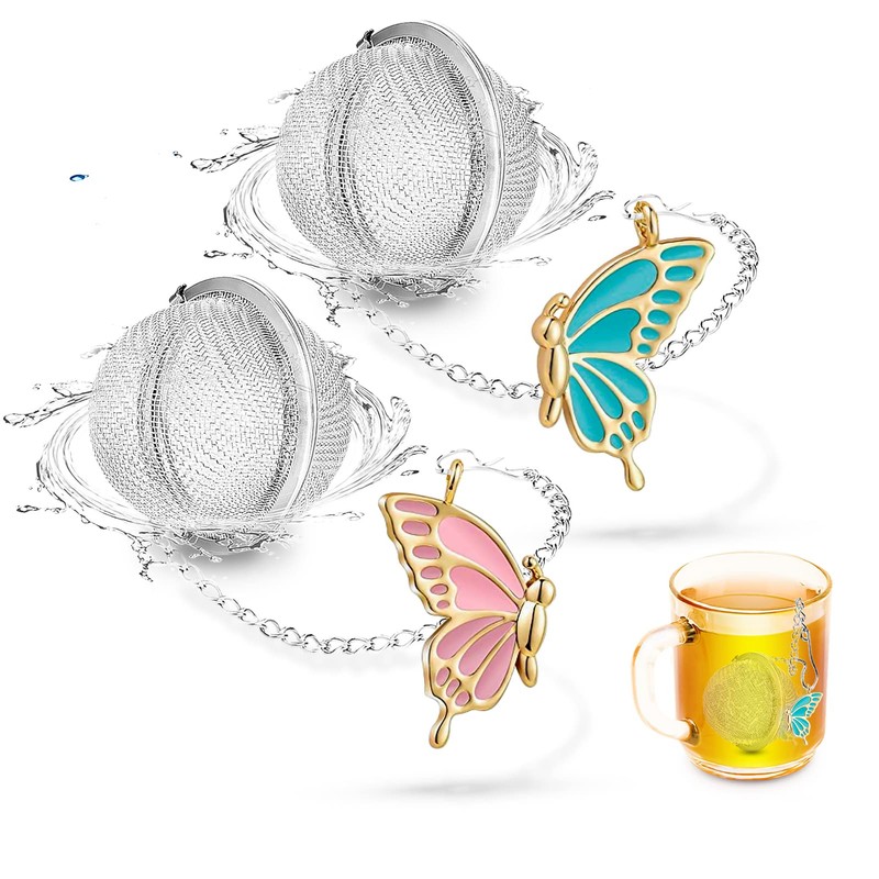 2 infusores de bola de té de tamaño de 4,5 cm de diámetro y 2 dijes hechos a mano con bonito colgante de mariposa BFF.