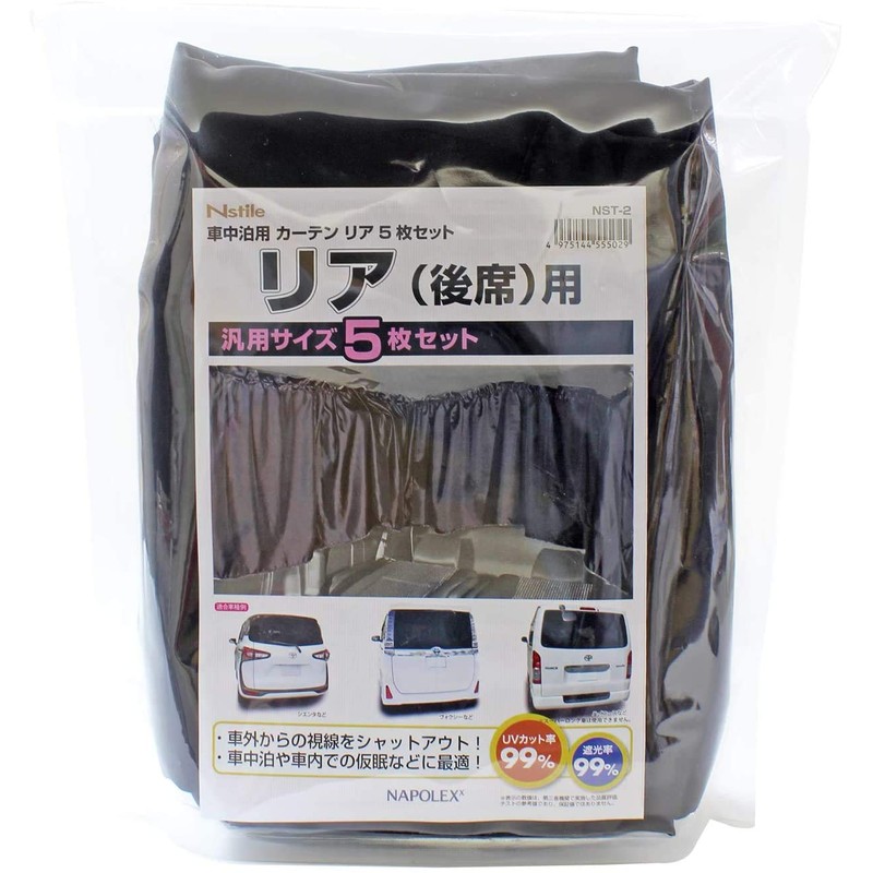 NSTILE by NAPOLEX NST-2 Car Overnight Curtains, Set of 5 for Rear Use, 99% UV Reduction, Blocks Out Eyes from Outside with Difficult-To-See-Through Fabric, Perfect for Napping, Universal