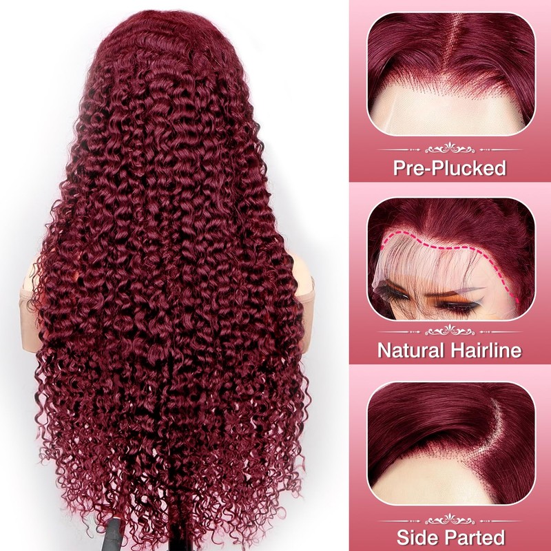 Nsvnsv 30 Inch Burgundy Wig Human Hair 99j Burgundy 13x6 Deep Wave Lace Front Wigs Human Hair Pre Plucked 180% Density HD Transparent Lace Frontal Wigs for Black Women Red Colored Wig