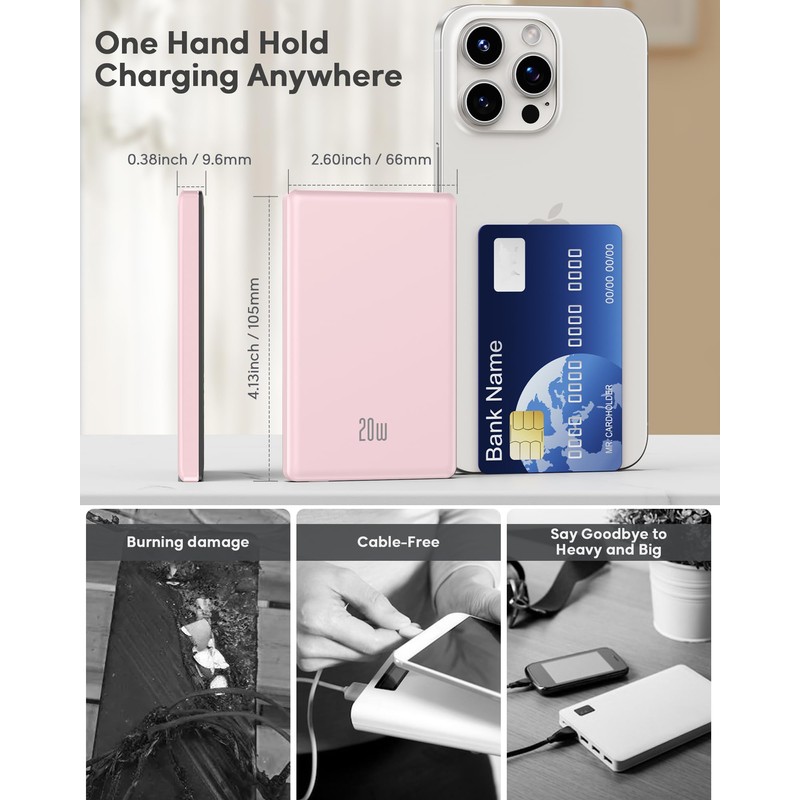 - Strong Magnetic Power bank - This wireless battery pack adopts 2024's advanced and innovative magnetic suction technology, with a magnetic force of up to 10N, which can be firmly attached to the phone. Thanks to its thin and light advantages, you can charge your phone while using it with one hand. You can hardly even feel it. It's really great! [Note: Powerbank Magnetic charging function is ONLY compatible with Mag-safe case on iPhone 16/15/14/13/12 series, USB C charging for Samsung Xiaomi,etc]