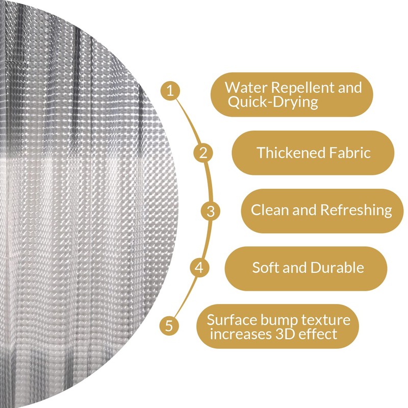 - Waterproof shower curtain for moisture-rich environments: This waterproof shower curtain is specially designed to with moisture-rich bathroom and shower environments, which can keep your bathroom away from moisture.
