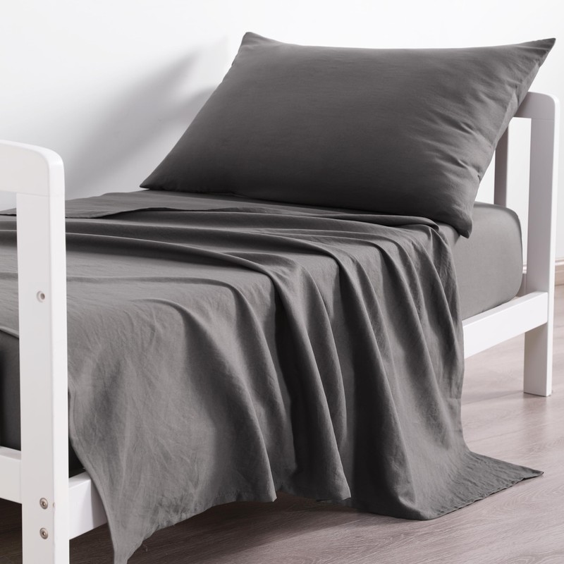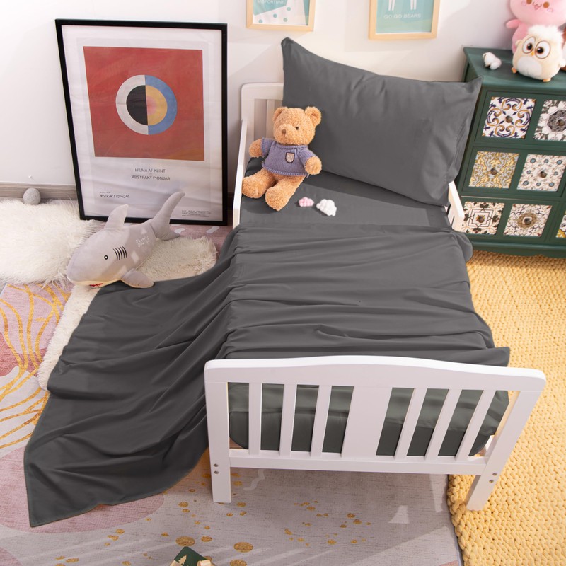 NTBAY Toddler Sheet Set - 3-Piece Microfiber Crib Sheet Set - Crib Flat Sheet Crib Fitted Sheet and Pillowcase - Solid Toddler Bedding Sets, Dark Grey