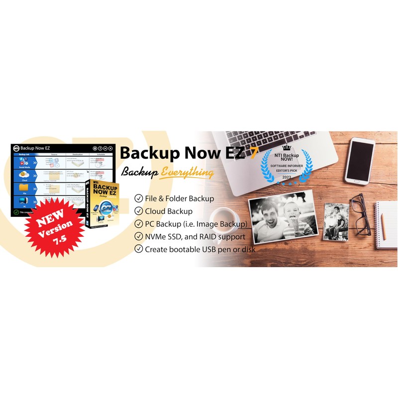 NTI Backup Now EZ 7.5 (for 1 Computer) | Full-System Image Backup | Cloud Backup | File-Folder Backup | Scheduled Backup | Available in Download and CD | Permanent License (Not 1-Year Subscription)