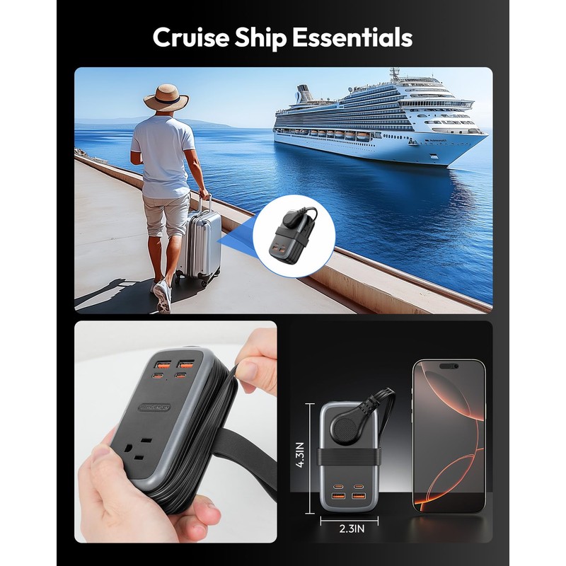 - 【Cruise Power Strip】: The pocket power strip is carry-on compact size With 4ft Wrap Around Cord. and much more manageable in bags or luggage. The travel extension cord will become your great home essentials and travel accessories. NTONPOWER travel power strip no surge protection, it's a cruise essentials as cruise lines require that power strips DO NOT have Surge Protection.
