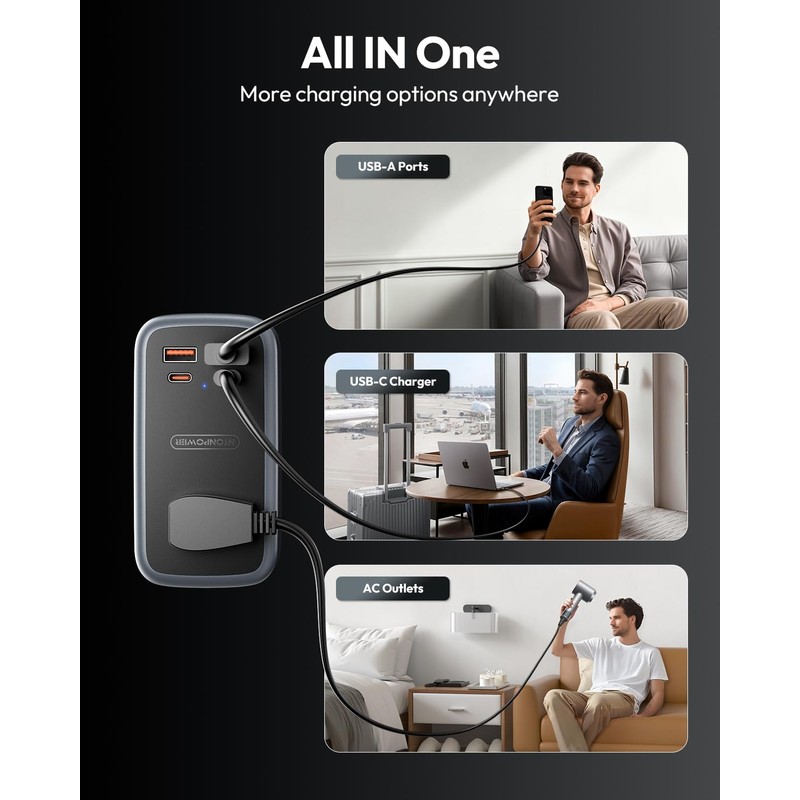 - 【GaN 65W PD Super Fast Charger】:NTONPOWER power strip built in the latest GaN technology, supports a maximum 65W output, a 65W charger quickly charging devices like the MacBook Pro, smartphones, and tablets. Charge your MacBook Pro 14" to 50% in just 37 minutes. Stay powered on the go