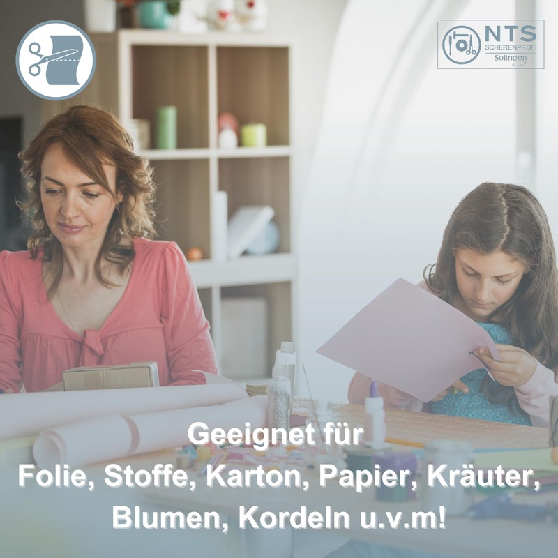 - Sharp all-purpose cutter. The universal scissors easily cut e.g. cardboard, leather, fabrics, fur, plastic films etc.