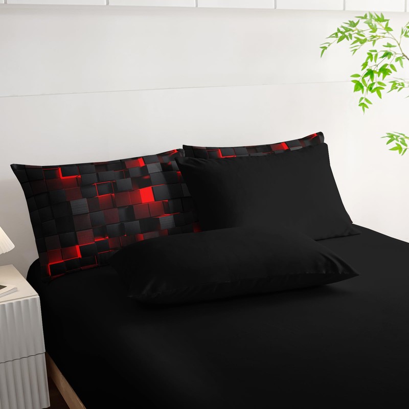 - Cool dark themed design: Combining different colors with black, it is the perfect complement to a boy's bedroom. This black bedding set features a cyberpunk style that can immediately brighten up your space.