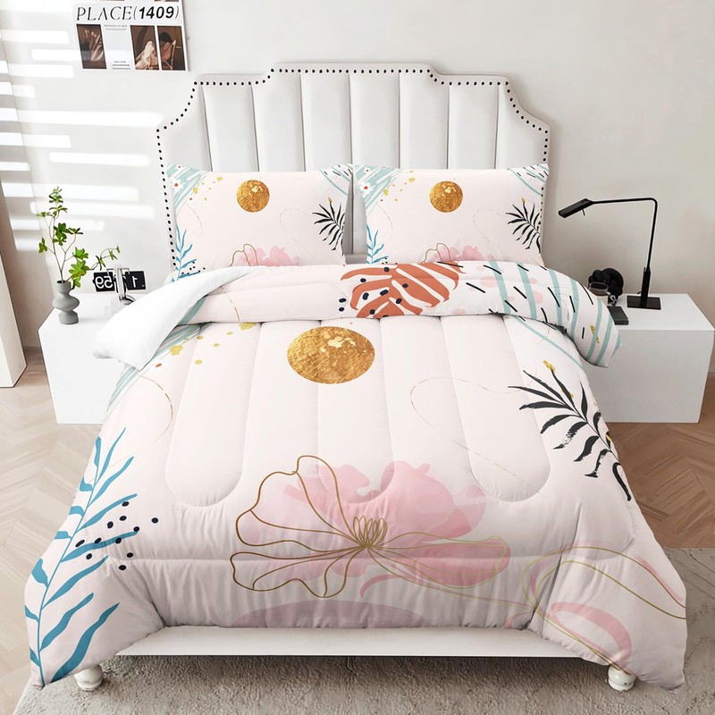 - [High Quality]: The comforter is made from 100% microfibre as the surface fabric and 100% polyester as the filling,which gives the comforter long-lasting softness and great breathability. In addition,super soft,lightweight,breathable,and great for all seasons,you will fall asleep every full night And wake up in the morning feeling refreshed.