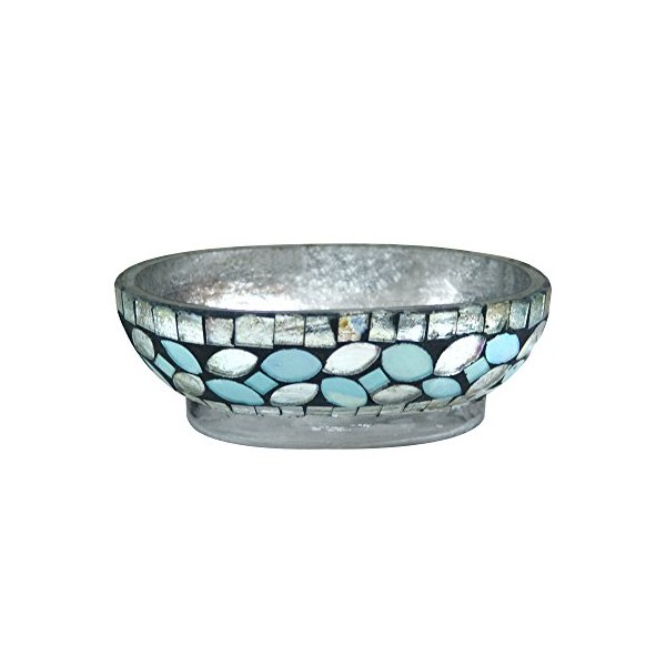 nu steel Collection Shower & Countertop, Aqua Finish Sea Foam Bright-Colored Mosaic Glass/Stainless Steel Soap Saver Dish, Bar Holder Tray for Bathroom Counter, Shower, Kitchen Sponges, Scrubbers