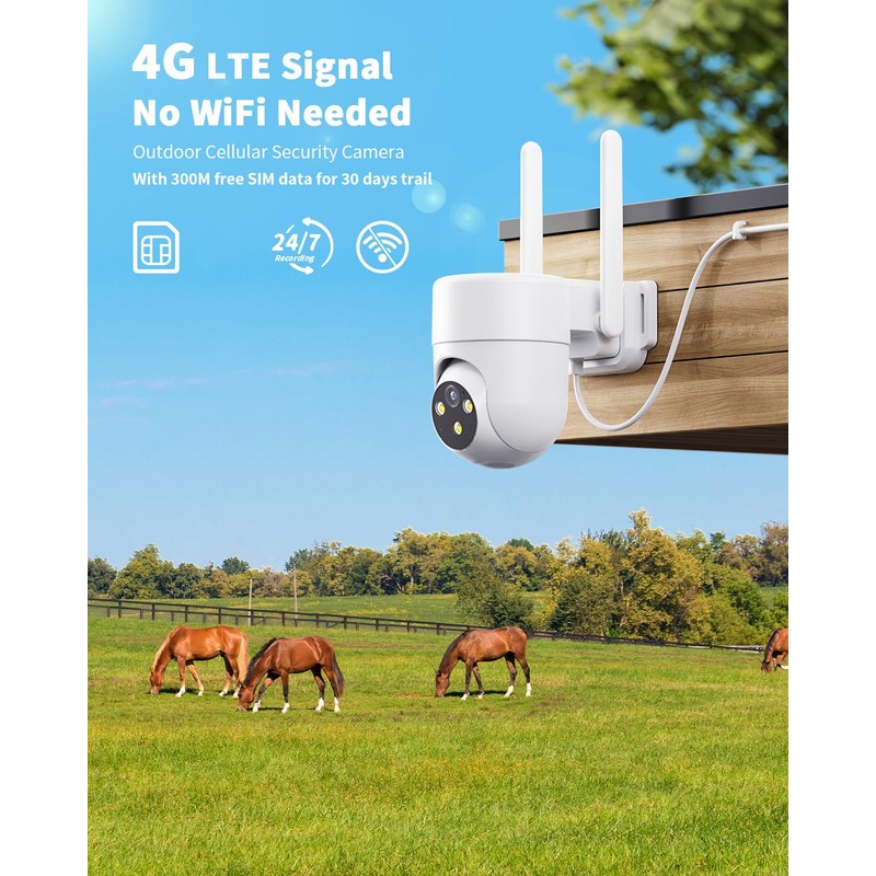 • 【IP66 Weatherproof】: This 4G outdoor camera is designed for harsh weather conditions, ensuring durability and reliability for outdoor use. And it supports wall mounting for optimal positioning and surveillance coverage.