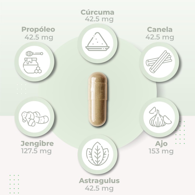 - Jengibre, ajo, propoleo, canela y más en cada cápsula