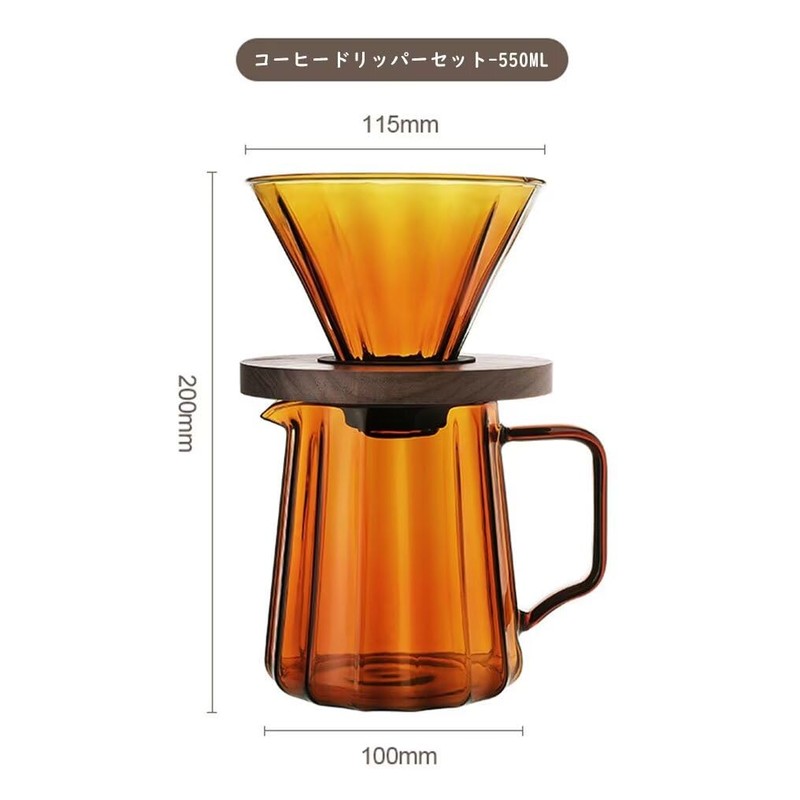 - ◆{商品詳細}セット内容:コーヒードリッパー、コーヒーサーバー、コースター(2枚)。材質-耐熱ガラス、天然木、シリコンゴム。容量:550ml 。お友達やご家族みんなでコーヒータイムを!