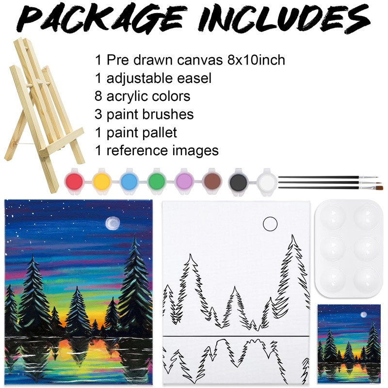 Nuberlic Pre Drawn Canvas Scenery Theme Paint Kit for Adult & Teen Sip and Paint Party Favor DIY Date Night Couple Activities Supplies(8x10 Canvas with Easel)
