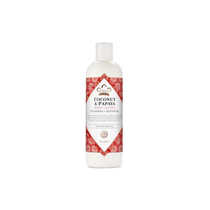 Experience the ultimate moisturizing body care with the Nubian Heritage Coconut & Papaya Body Lotion, Polishing & Renewing formula. This luxurious skincare product provides deep hydration and nourishment for all skin types, including extremely dry skin. A whipped blend of nutrient-rich ingredients leaves your skin feeling soft and revitalized.