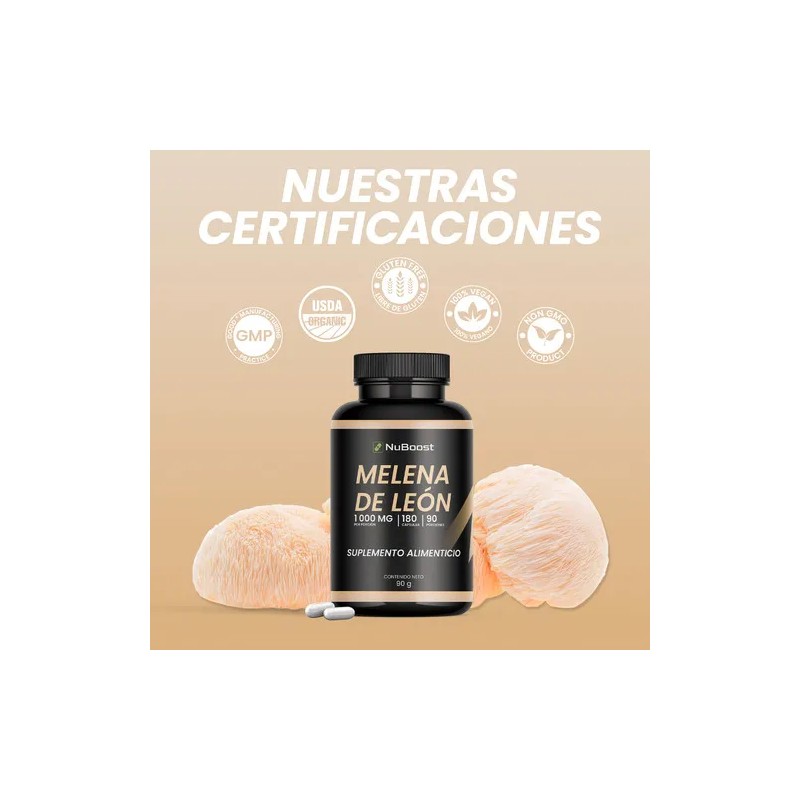 Nuboost Melena De León Hongo Puro 180 Capsulas Hecho En Usa Sin Sabor