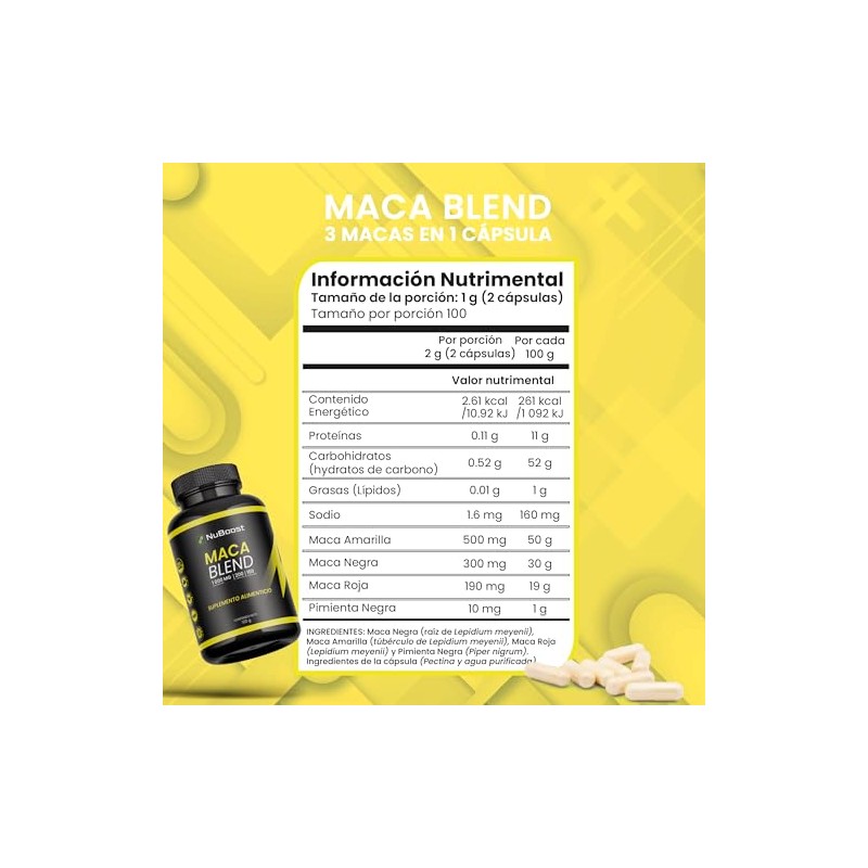 NUBOOST - NuBoost Mezcla de Maca Peruana 1000 mg – 200 Cápsulas de Maca Negra, Roja y Amarilla con Pimienta Negra – Sin OMG – Certificado USDA – Hecho en EE. UU.. ✨ Producto de calidad premium con excelentes reseñas. Materiales de primera calidad y diseño funcional. 🔥 Alta demanda - Stock limitado. Ideal para quienes buscan lo mejor en calidad y estilo. Producto auténtico con satisfacción total asegurada. ¡No te quedes sin el tuyo y aprovecha esta oportunidad única!