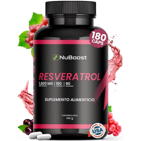 Nuboost - Resveratrol - Resveratrol 1000 Mg Puro - Antioxidantes, 180 Cápsulas Vitamina C - Acaí - Pimienta Negra Hecho en USA