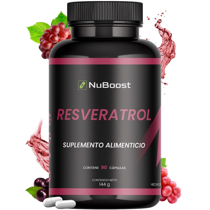 Nuboost - Resveratrol - Resveratrol 1000 Mg Puro - Antioxidantes, 90 Cápsulas Vitamina C - Acaí - Pimienta Negra Hecho en USA