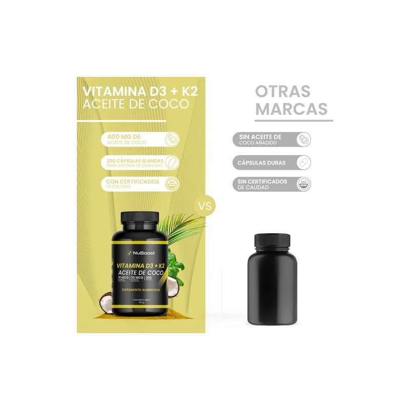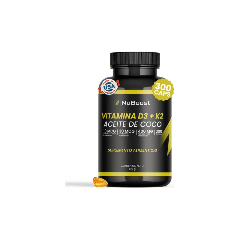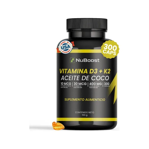 Nuboost Vitamina D3 + K2 Y Aceite De Coco, 300 Cápsulas Usa