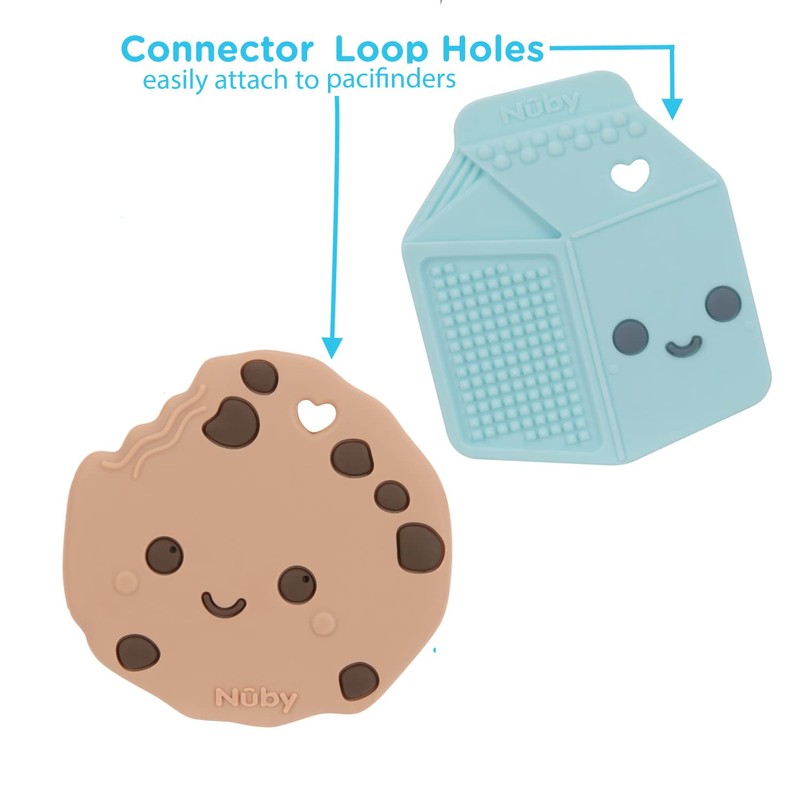- Adorable silicone chocolate chip cookie teether & milk carton teether set is playful, keeps your little one busy and soothes their sore gums.