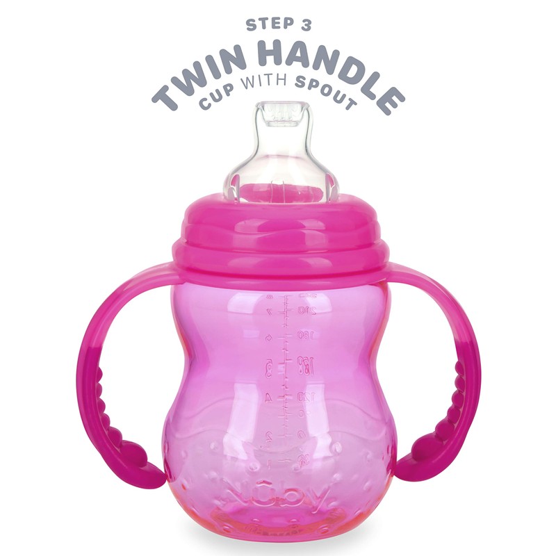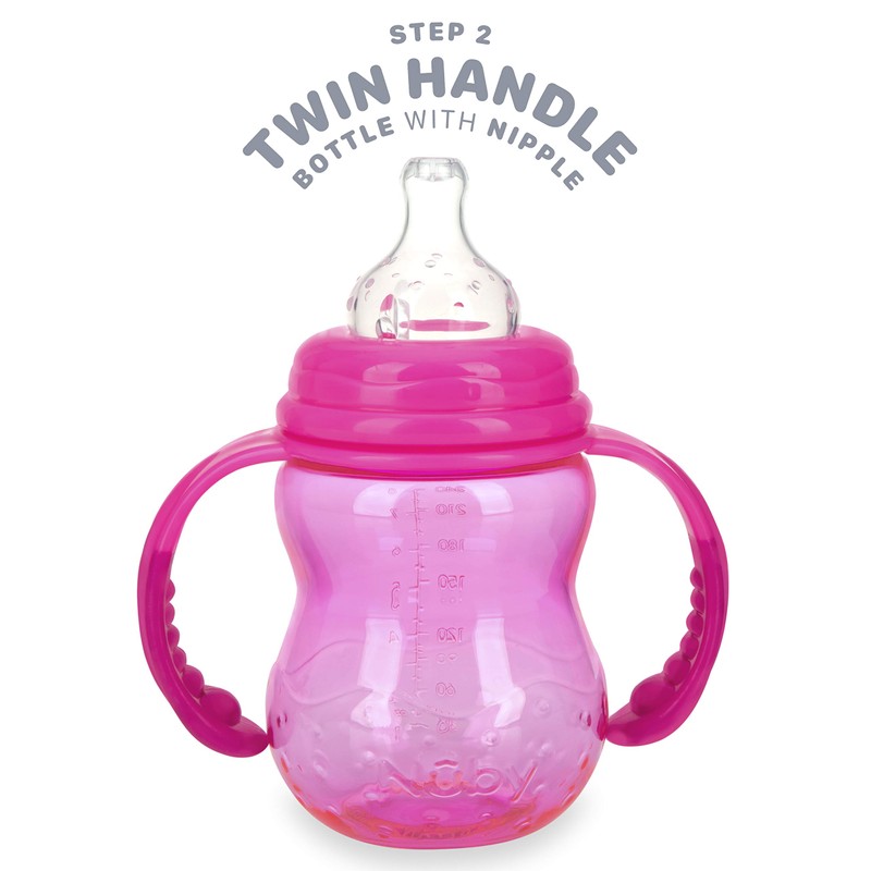 Nuby Botella de 3 etapas Tritan cuello ancho Grow with Me sin derrames, 8 onzas, rosa
