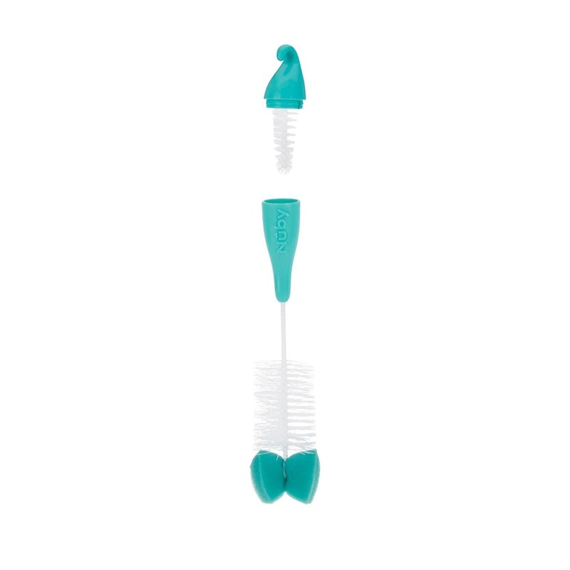 Nuby Bottle and Nipple Brush with Bristles and Sponge Tip | 3 Pack: Aqua, Coral, Lime Green| Hanging Handle with Hook for Drying