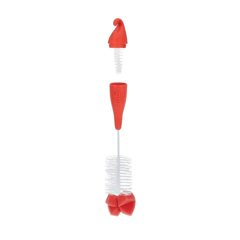 - 【EASY GRIP LONG HANDLE】 The long bottle brush handle with sponge top provides easy access to the bottom or bottles. The integrated nipple cleaning brush fits inside handle for easy storage when not in use and ventilation hole allows for quick drying of nipple brush.