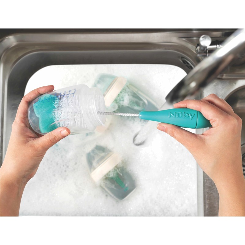 - 【3 PACK BOTTLE BRUSHES: AQUA, CORAL, LIME GREEN- EASILY CLEAN BABY BOTTLES, BOTTLE ACCESSORIES, CUPS, BREASTFEEDING ACCESSORIES】 The combination of the soft sponge top and durable nylon bristles sweep away residue, ensuring a thorough cleaning of your baby items.