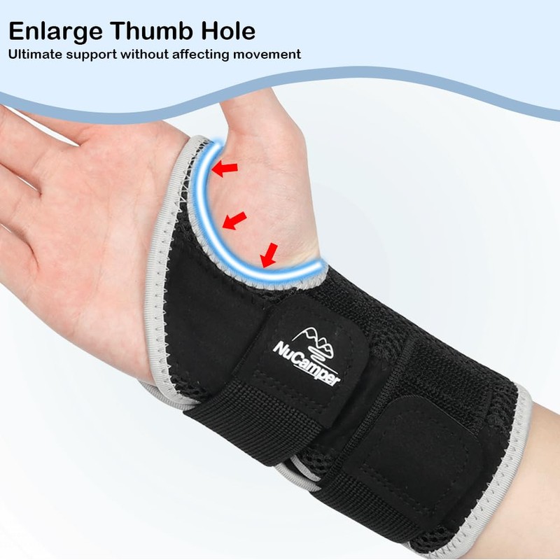 NuCampe wrist carpal tunnel Brace for women will provide users with a more comfortable experience and safer protection First of all, the mesh fabric is breathable and not stuffy, and the size can be adjusted freely, suitable for hand and wrist, universal design, suitable for left and right hands, and the half-open design of the thumb stabilizer can provide support for the thumb and wrist, but the remaining four fingers Keep it open, so they have complete freedom of movement. They can help you fix and stabilize your wrist and thumb, reduce damage and stress on muscles, ligaments and joints, are suitable for long-term repetitive tasks, relieve mouse tenderness and typing.