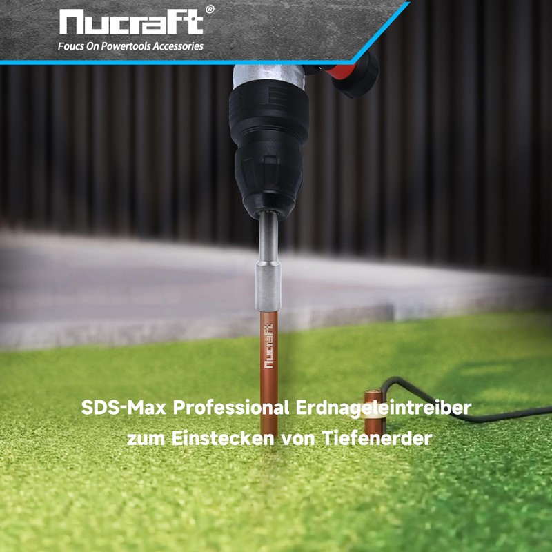 Nucraft SDS-MAX Professional Ground Nail Driver for Inserting Deep Earth Earth Ground Rod Earth, 162 x 28 mm, Inner Diameter 20.5 mm